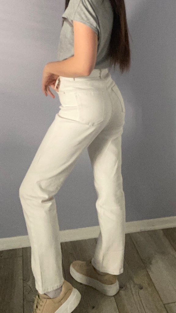 Next, we have the Solid Belted Straight Jeans in White.